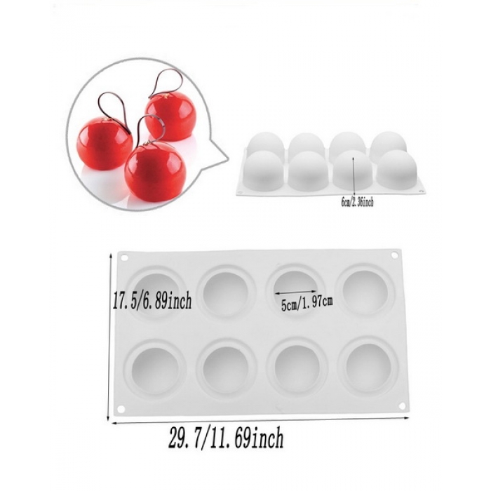 พิมพ์มูสเค้ก ซิลิโคนสีขาว ลายวงกลม 8 ช่อง ขนาดสินค้าดูในภาพเลยค่ะ