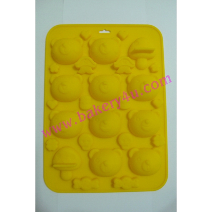 พิมพ์ซิลิโคนช็อคโกแล๊ตหมี 10 ช่อง เห็ด 2 ช่อง ชิ้นเล็กๆอีก 16 ช่อง